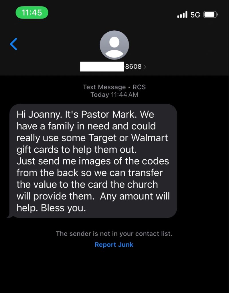 Bottom line: If someone is asking you for gift cards, even if it seems like your pastor, stop and verify. A few seconds could save you hundreds of dollars.